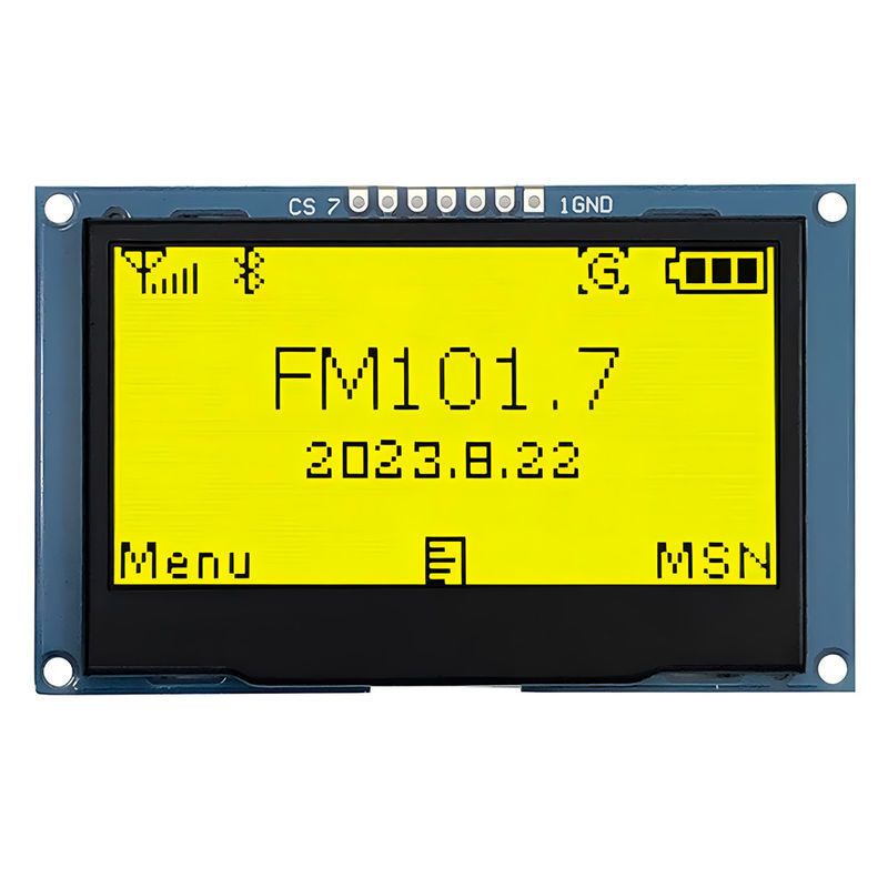 SFOMS242YZ7-12864WBYG-01 OLED-module is oorspronkelijk touchloos, maar het touchpaneel is aanpasbaar.geldlezer, handheld apparaat en mobiele voedselbestelmachine enz.